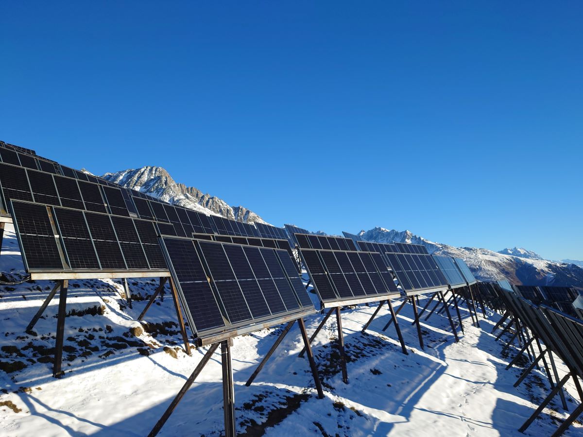 Erste alpine Photovoltaik-Grossanlage der Schweiz in einer Höhenlage von 1’950 bis 2’100 Metern über Meer.